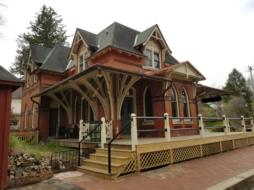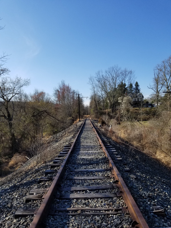The tracks behind the stop are abandoned for miles and what I normally walk on. The tracks right next to the station going forward are used with a train sporadically for holiday/special events. They do a halloween train during October and kids/parents dress up and ride into a town where they can walk around, shop then return. There is another similar building on the trip. Here is the website with some info and pictures. West Chester Railroad - West Chester, PA