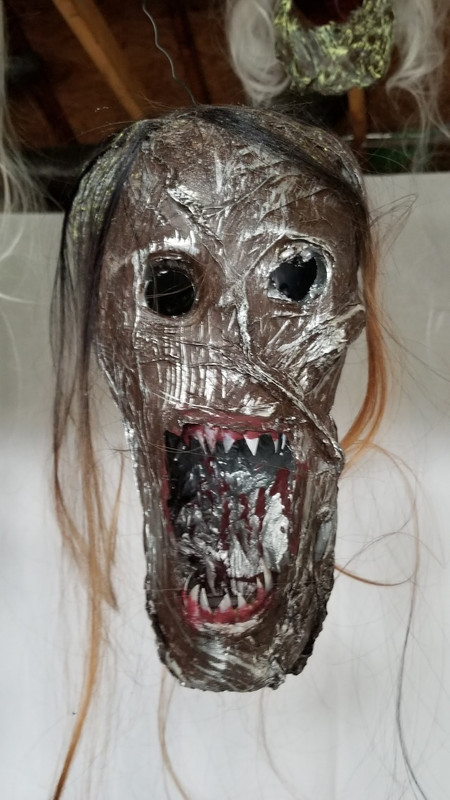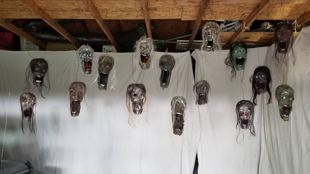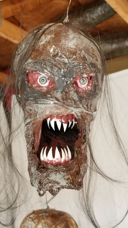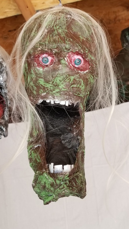 I wonder what the Amazon deliverer was thinking today as he walked past the heads drying in the driveway, came to the garage with heads hanging from the ceiling, while I was wearing a respirator cutting hair off a wig listening to Hell Awaits by Slayer.